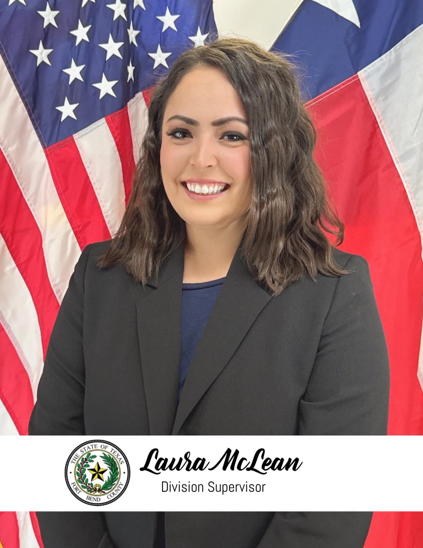 Laura McLean has been employed with the District Clerk’s Office since 2017, where her journey has been marked by dedication, continuous growth, and exemplary service. Beginning her career as a Criminal Deputy District Clerk, Laura's unwavering commitment to excellence propelled her through various roles within the office, which includes positions such as Office Manager, Accounting Department Supervisor, and Accounting and Administrative Services Division Supervisor.
