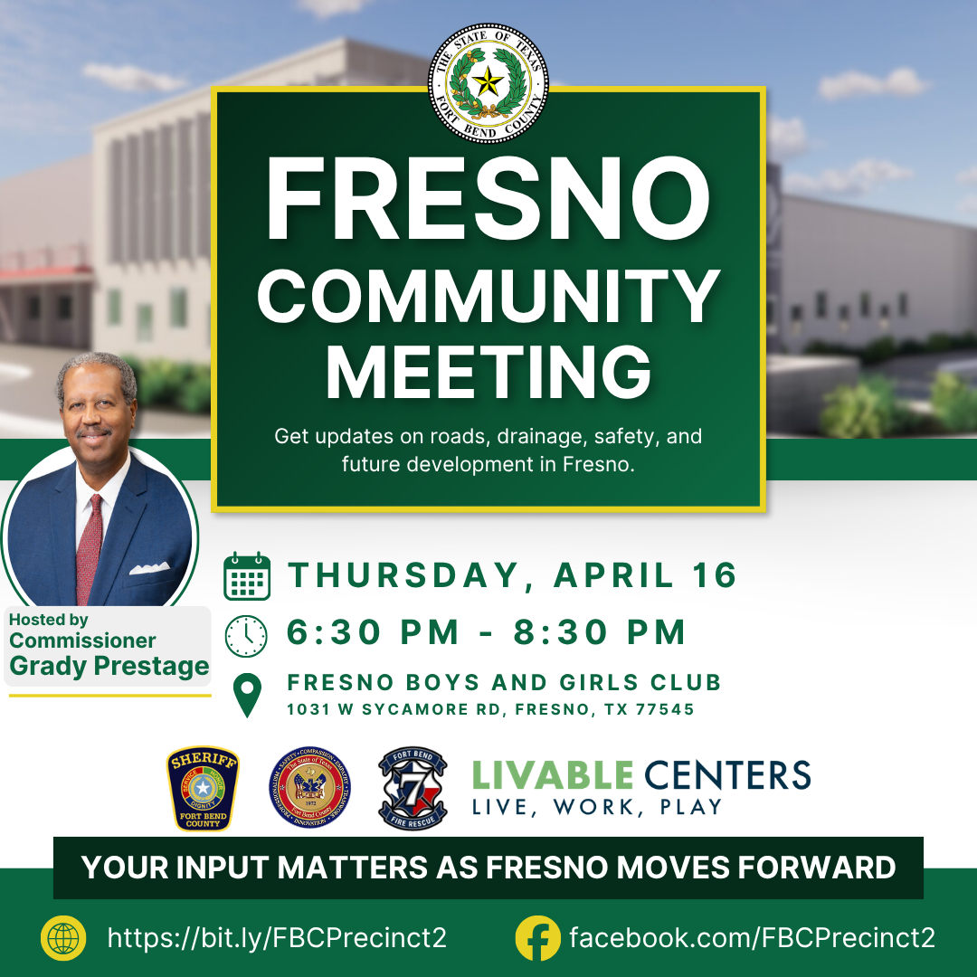 Attendees will hear directly from Fort Bend County departments and partner agencies, with opportunities to ask questions and engage in discussion about projects impacting the Fresno community.
